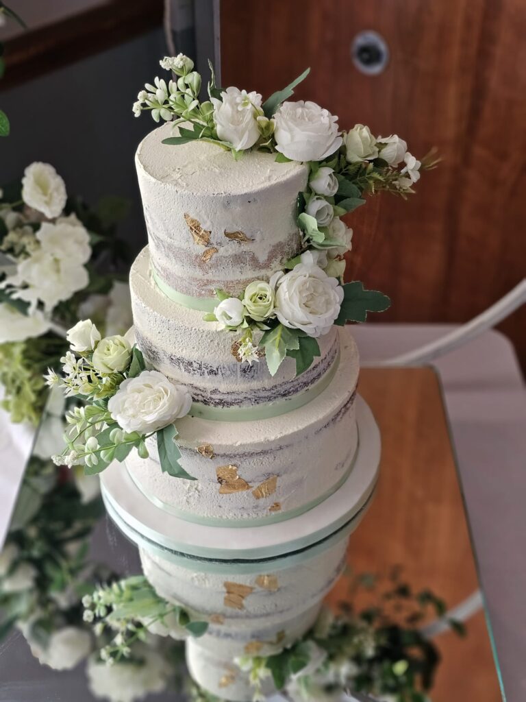 Final payment for the cake should be made 6 weeks before the wedding date. Confirm and final details make plans for delivery.